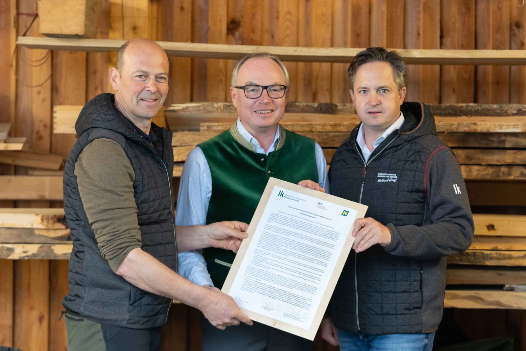 Anlässlich des Tag des Waldes haben LH-Stellvertreter Stephan Pernkopf, Landwirtschaftskammer NÖ-Präsident Johannes Schmuckenschlager und NÖ Waldverband-Obmann Franz Fischer die „Charta für eine selbstbestimmte Waldbewirtschaftung in Niederösterreich“ unterzeichnet. Johannes Schmuckenschlager, Präsident der Landwirtschaftskammer Niederösterreich, betont: „Wir fordern eine europäische Politik, die praxistauglich ist und den Waldbesitzerinnen und Waldbesitzern bei der nachhaltigen Bewirtschaftung und Pflege der Wälder unter die Arme greift. Sie muss an den Erfordernissen der Wälder und an den Nöten der Menschen, die sie pflegen, ausgerichtet sein.“ Anstatt sie durch immer neue überzogene Vorgaben zu bevormunden, brauche es für klimastabile, zukunftsfähige Wälder die Einbindung der Waldbesitzerinnen und Waldbesitzer im Rahmen eines strukturierten Dialogs. Die Eindämmung der globalen Entwaldung und Waldschädigung könne nicht mit bürokratischen Schikanen gegen die vielen Waldeigentümer in Österreich erreicht werden, daher müsse umgehend eine Revision der Entwaldungsverordnung vorgelegt werden.