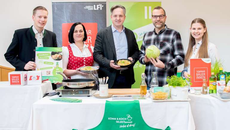 Um zu zeigen, wie einfach, vielfältig und gesund man regionale Lebensmittel verwerten kann und wie kostengünstig es ist, heimische Produkte selbst zu kochen, hat die Landwirtschaftskammer NÖ die Initiative „SELBSTbewusst kochen“ ins Leben gerufen. Neben bunten Rezepten und zahlreichen Tipps fürs sichere Gelingen, zur richtigen Lagerung sowie zur Resteküche gibt es auch die Kosten pro Portion dazu. Denn: Kochen mit regionalen Lebensmitteln ist – entgegen vielfacher Meinung – nicht teuer. Dazu hat Schmuckenschlager die Seminarbäuerinnen ins Boot geholt.