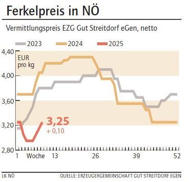 Die EU-Schlachtschweinemärkte zeigten sich auch in der vergangenen Woche meist ausgeglichen und preisstabil - Lediglich in Deutschland und Italien war das Aufkommen an schlachtreifen Tieren umfangreich - So kommt der Abbau der Überhänge in Deutschland bei knapp behaupteten Notierungen nur schleppend voran - In Italien blieb der Schweinepreis durch verstärkte Anlieferungen der Landwirte unter Druck - Am heimischen Schlachtschweinemarkt war das Angebot am Lebendmarkt rückläufig - Am Fleischmarkt fehlt es aber weiter an Impulsen - Zudem sorgt preisgünstiges Schweinefleisch aus Deutschland für Unruhe in der Branche - Der Erzeugerpreis wurde daher eine weitere Woche auf unverändertem Niveau fortgeschrieben - Der Basispreis der Erzeugergemeinschaft beträgt ab 19. Februar 1,70 Euro (unverändert) pro kg plus USt. - Der Auszahlungspreis für Zuchtsauen liegt bei 0,93 Euro (unverändert) pro kg plus USt. - Der Durchschnittspreis (ca. 60% MFA) lag in der 08. Woche bei 1,89 Euro pro kg plus USt.