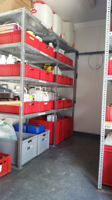 Praxistipp: Die Auffangkapazität des "flüssigkeitsdichten, wannenförmigen Bodens" sollte zumindest 20 - 30% der Flüssigformulierungen betragen. Für besonders gekennzeichnete Präparate kann diese Anforderung auch mit einer chemikalienbeständigen Kunststoffwanne, in die man die Mittel hineinstellt, erfüllt werden. Werden viele Flüssigformulierungen aufbewahrt, ist eine höhere Auffangkapazität empfehlenswert.