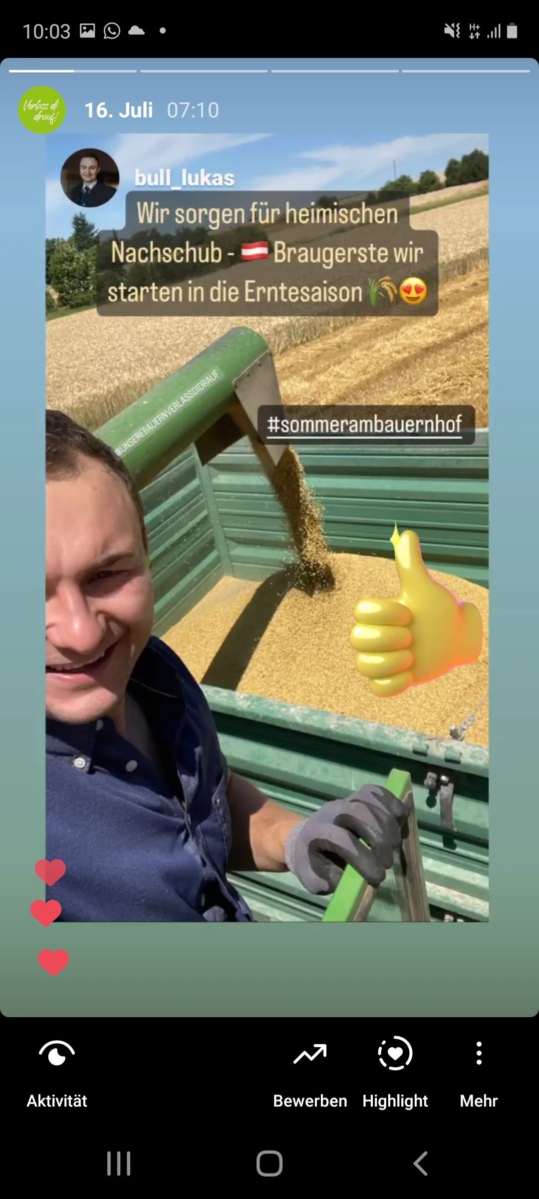 Da wird geerntet, gemolken, gemäht, gedroschen – im Sommer herrscht Hochsaison auf den heimischen Betrieben. Da geht es geschäftig zu. Nun zeigen die Bäuerinnen und Bauern, wie sie die heiße Jahreszeit verbringen und posten ihre Bilder und Videos unter dem Hashtag #sommerambauernhof. Die Posts werden geteilt und gelikt. Dadurch erzählen sie gemeinsam viele einzigartige Geschichten vom Leben am Bauernhof.