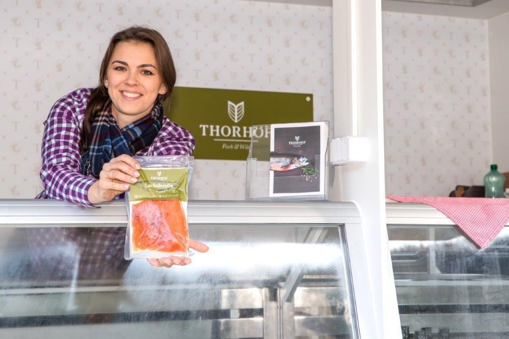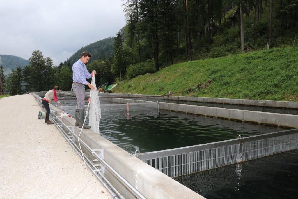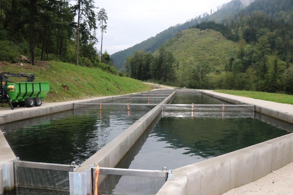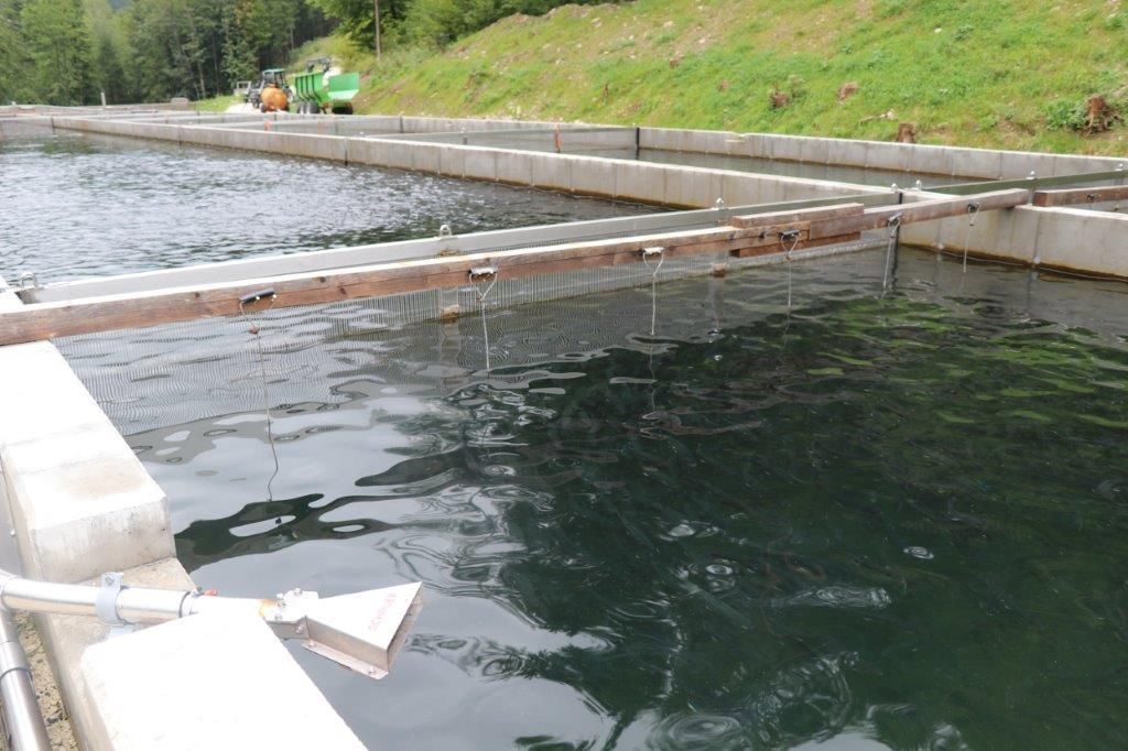 Die automatische Fütterung befindet sich unterhalb des Durchflussbeckens. Sie holt sich das Futter für das jeweils programmierte Becken. Der Vorrat in Big Bags fließt bei Bedarf nach. © Paula Pöchlauer-Kozel/LK Niederösterreich